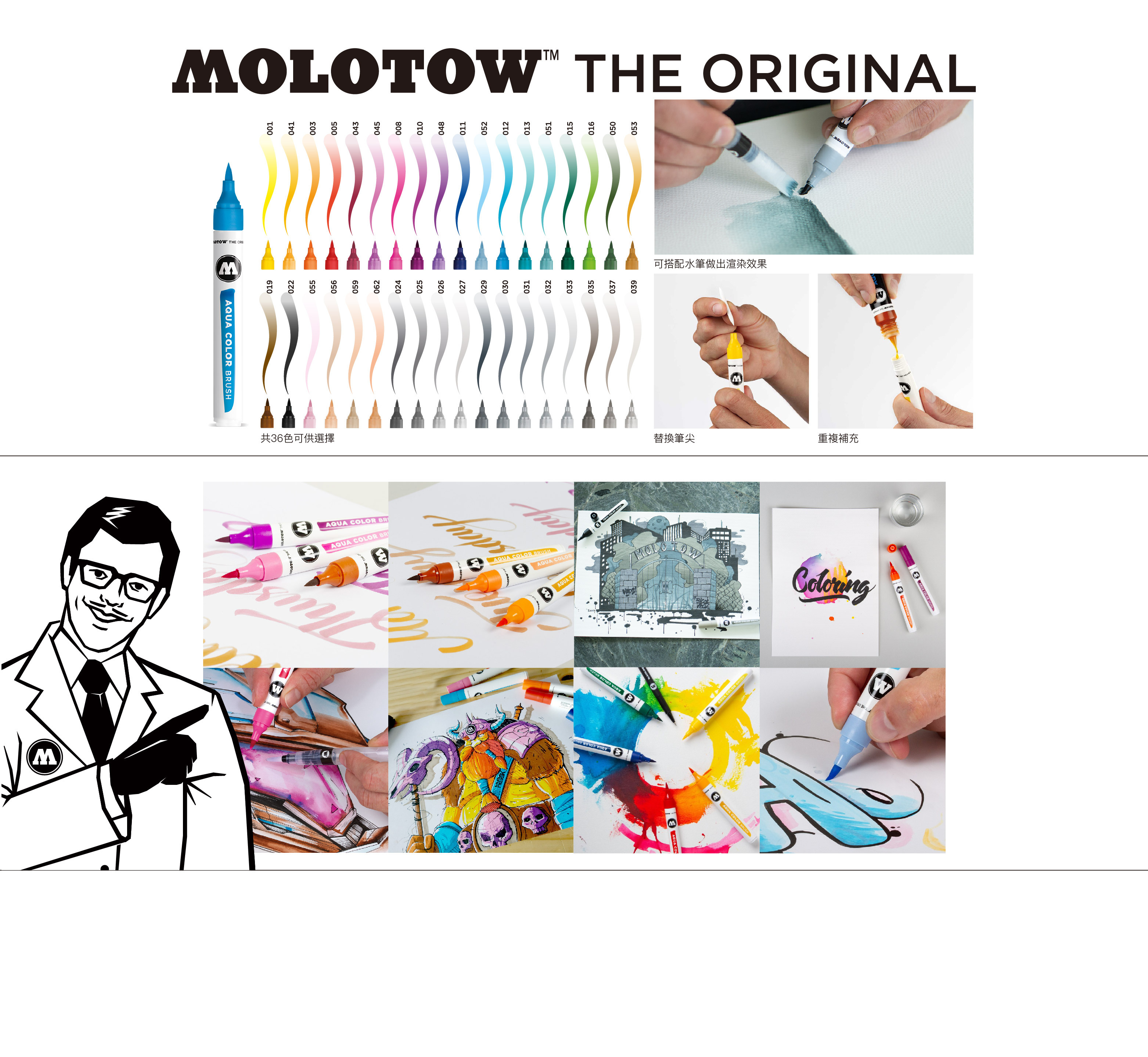水性軟尖麥克筆為棉芯系統,專為混合個人喜好色調而開發,而墨水使用了食品著色劑,對兒童是安全的,並且可再重複補充。水性軟尖麥克筆附有色彩濃郁的墨水和穩定的彈性筆尖,它是著色、手繪、塗鴉甚至是書法創作的理想選擇,由於易於操作,也非常適合初學者和學生使用。